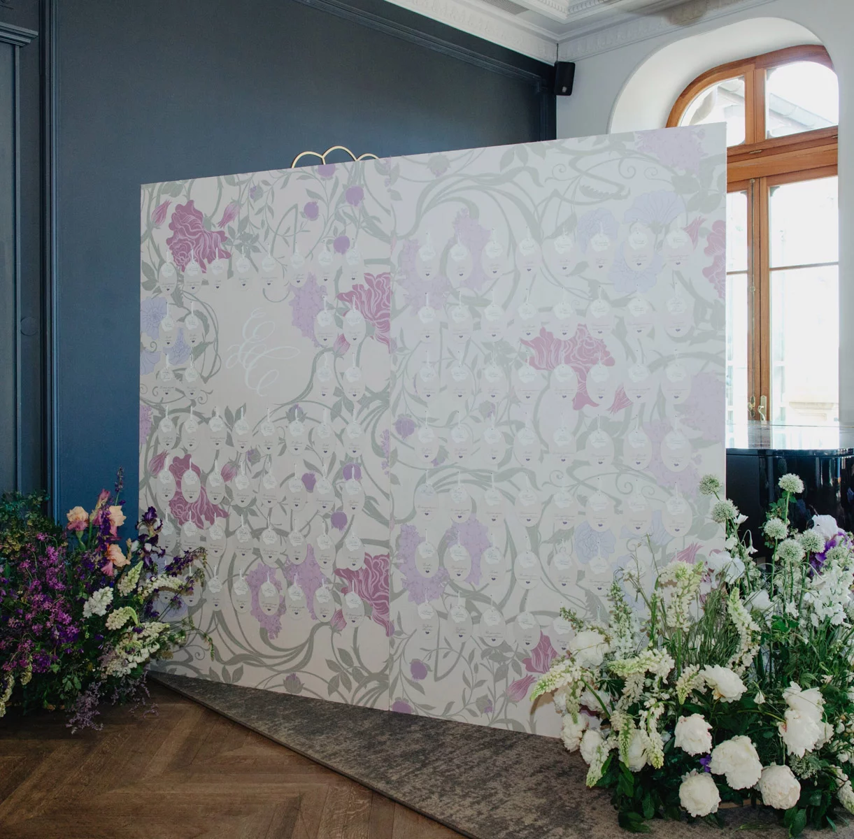 Backdrops et panneaux plan de table disponibles à la location, avec livraison ou récupération chez notre partenaire Velvet.